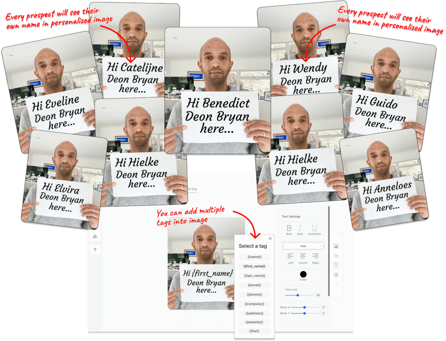 This means you can create personalized prospecting videos for ANY number of different industries you want… for ANY occasion you want… be it prospecting, getting employees, interview invites, getting backlinks… you name it!Â